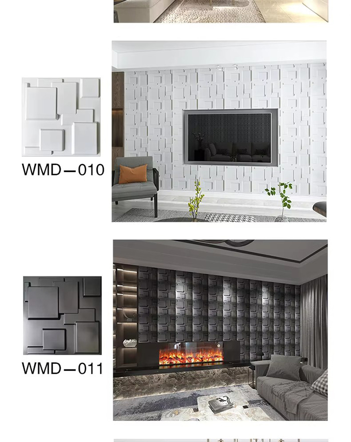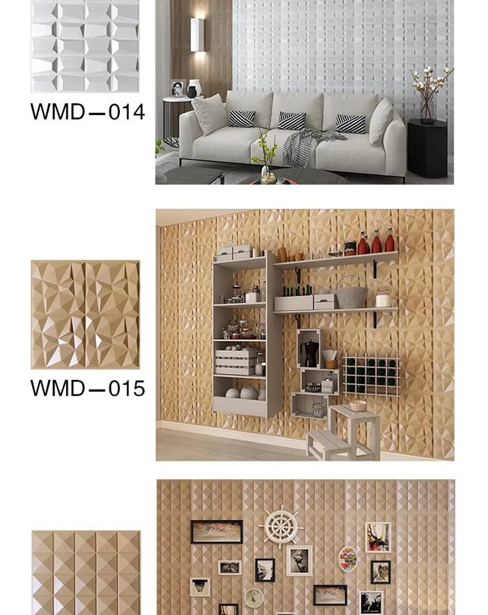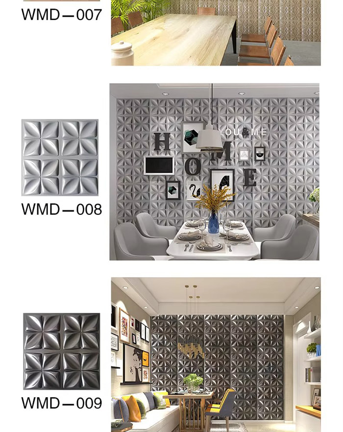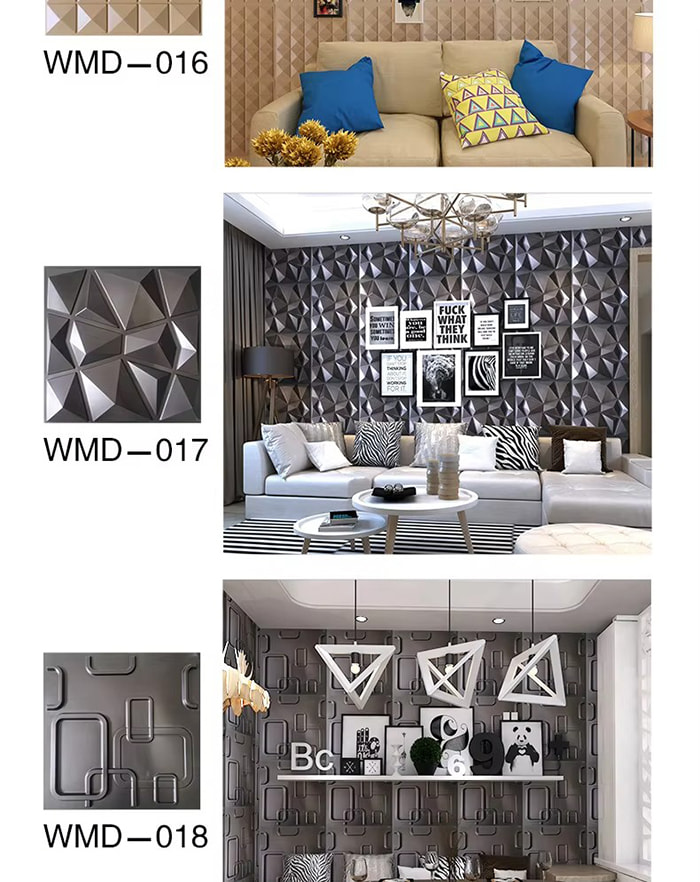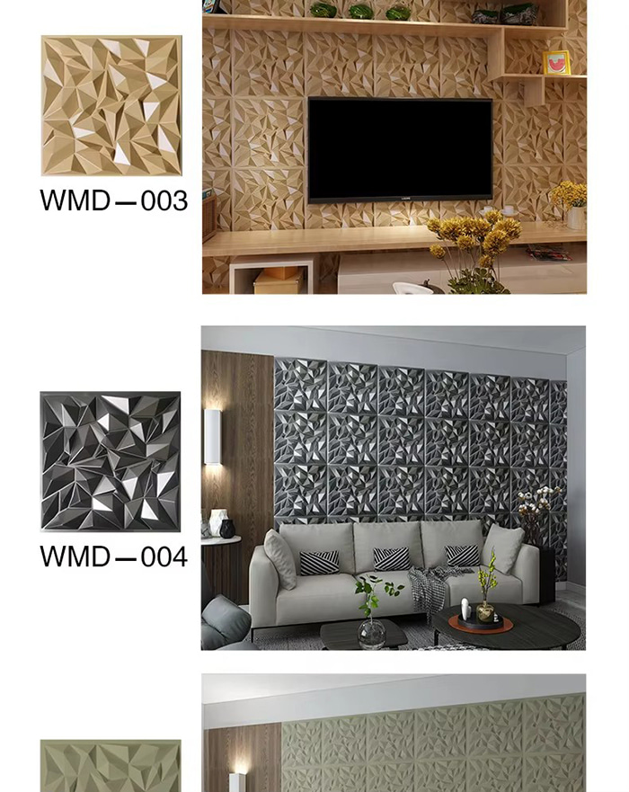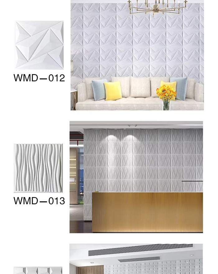 3D প্রাচীর প্যানেল একটি নতুন ধরনের আলংকারিক উপাদান। ছাঁচ গরম প্রেসিং, খোদাই এবং মিলিং বা CNC মুদ্রণের মাধ্যমে, প্যানেলের পৃষ্ঠে ত্রিমাত্রিক নিদর্শন তৈরি হয়। এর ভিত্তি উপকরণগুলির মধ্যে রয়েছে PVC, ঘনত্বের বোর্ড, অ্যালুমিনিয়াম খাদ, বাঁশের ফাইবার, ইত্যাদি। উদাহরণ হিসাবে PVC গ্রহণ করে, উচ্চ-আণবিক যৌগিক পদার্থগুলি উচ্চ তাপমাত্রায় এক্সট্রুড করা হয়, এবং পৃষ্ঠের নিদর্শনগুলি নির্ভুল ইস্পাত ছাঁচ দ্বারা চাপা হয়, ন্যূনতম অবতল এবং উত্তল নির্ভুলতা 1.0 মিমি পর্যন্ত পৌঁছায়। 3D প্রাচীর প্যানেল একটি ত্রিমাত্রিক চাক্ষুষ প্রভাব আছে. আলো এবং ছায়া প্রতিসরণ নীতির মাধ্যমে, 2D সমতল গভীরতার অনুভূতি সহ একটি 3D ভিজ্যুয়াল ইফেক্টে রূপান্তরিত হয় এবং একই এলাকার নীচে ভিজ্যুয়াল লেয়ারিং 3 গুণেরও বেশি বৃদ্ধি পায়।
