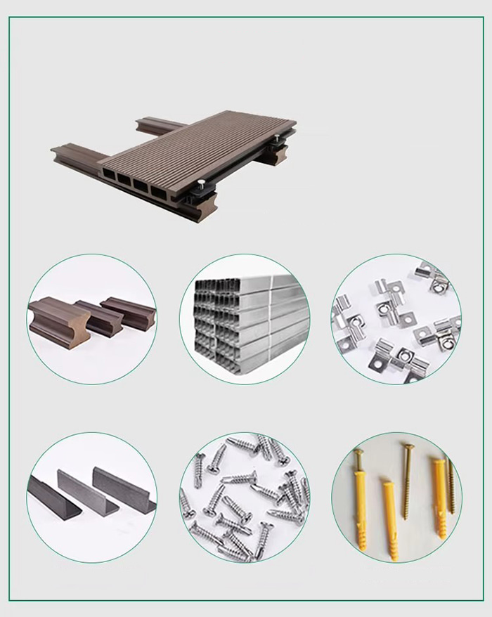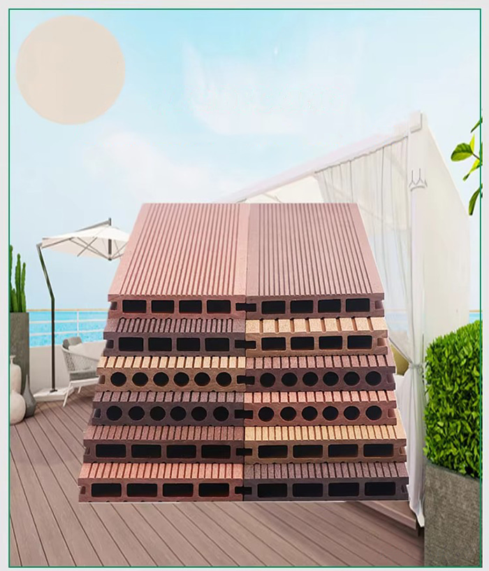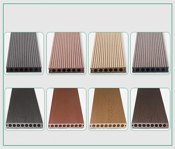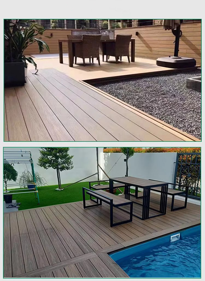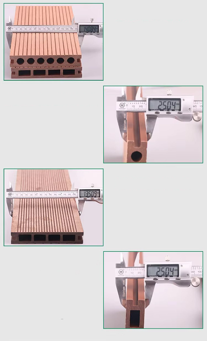 উপাদান কাঠের ফাইবার/বাঁশের ফাইবার পিভিসি রজন শিখা প্রতিরোধক/ক্যালসিয়াম কার্বনেট পাউডার (ঐচ্ছিক) পৃষ্ঠের আবরণ (UV/কাঠের শস্য স্থানান্তর)