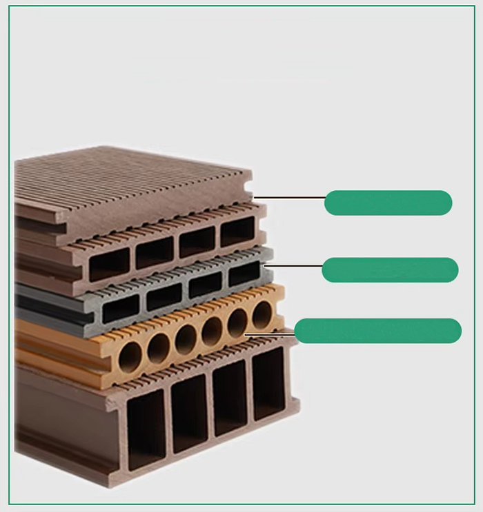 সাবস্ট্রেট মিক্সিং কাঠের ফাইবার (50-60%) পিভিসি রজন (30-40%) কার্বন ফাইবার অ্যান্টি-জারোশন লেয়ার (5-10%), অ্যালুমিনিয়াম হাইড্রক্সাইড শিখা প্রতিরোধক যোগ করে A2 গ্রেডে উন্নতি করে।