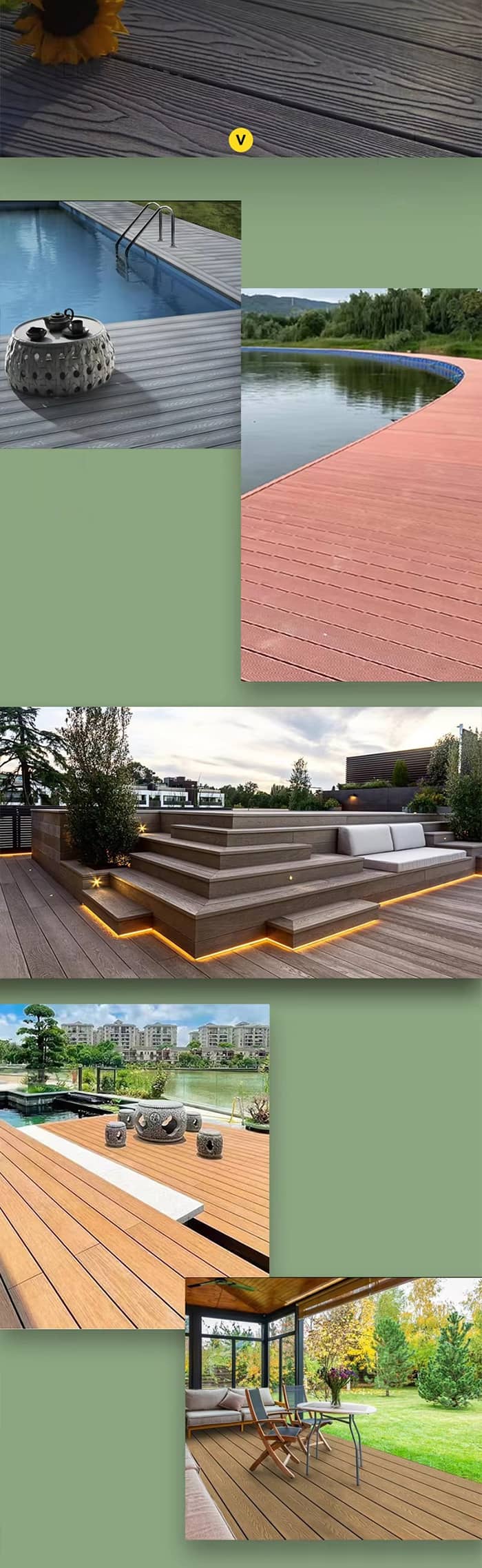 বাইরের পরিবেশ: যেমন টেরেস, ডেক, বাগানের ট্রেইল, বাণিজ্যিক পথচারী রাস্তা ইত্যাদি, শক্তিশালী আবহাওয়া প্রতিরোধের সাথে, পোকা-বিরোধী, বহিরঙ্গন ব্যবহারের জন্য উপযুক্ত