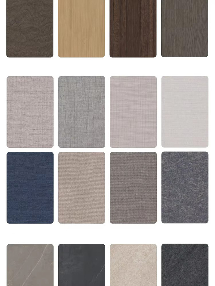কাঠের দানা, কাপড়ের দানা, শক্ত রঙ, পাথরের দানা ইত্যাদির মতো বিভিন্ন রং দিয়ে মুখোশ ঢেকে রাখতে PUR হট মেল্ট আঠালো প্রযুক্তি ব্যবহার করুন।