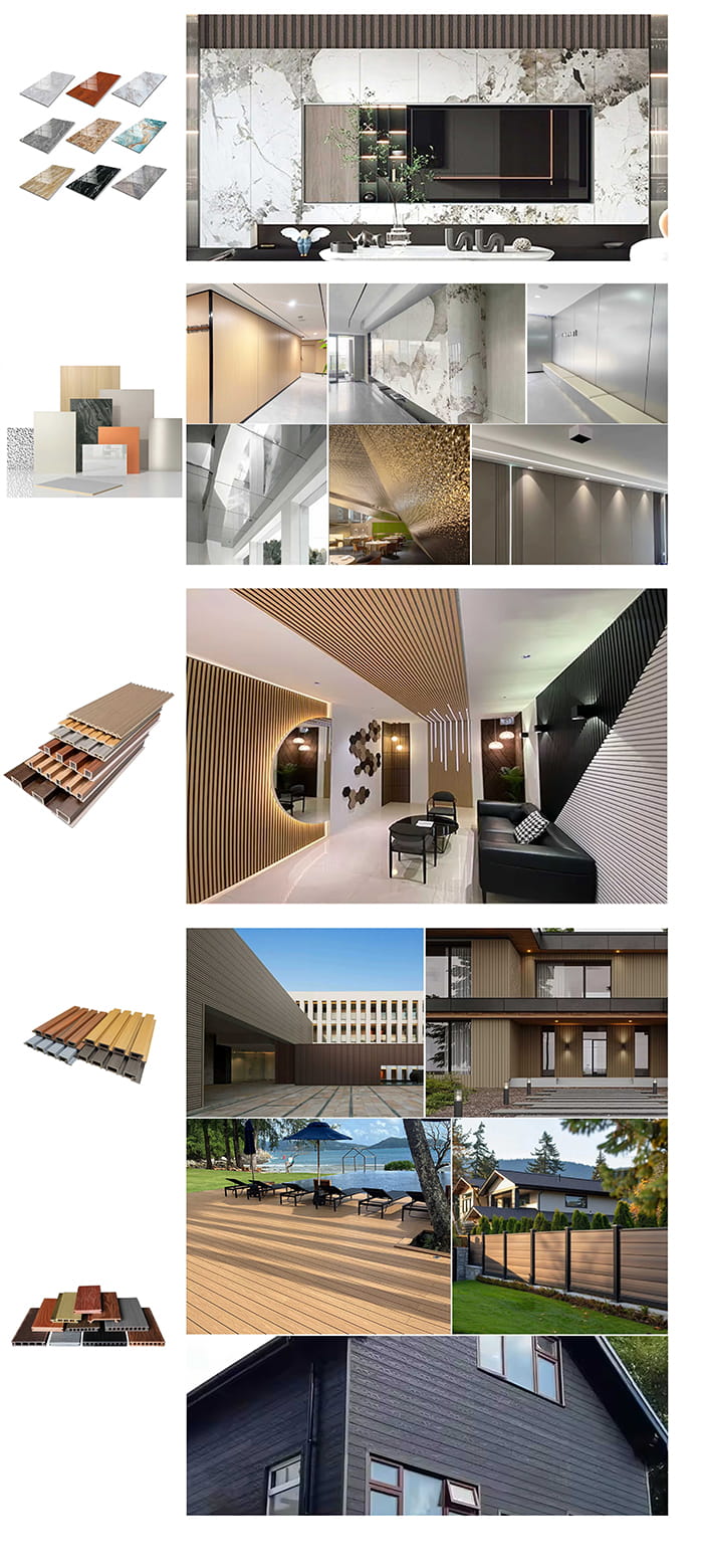 WPC ইনডোর প্যানেলগুলি হল নতুন পরিবেশ বান্ধব আলংকারিক প্যানেল যা কাঠের ফাইবার বা বাঁশের ফাইবার দিয়ে তৈরি মূল কাঁচামাল হিসাবে, যা পিভিসি রজন, ক্যালসিয়াম কার্বনেট পাউডার এবং উচ্চ তাপমাত্রা এবং উচ্চ চাপ প্রক্রিয়ার মাধ্যমে স্টেবিলাইজার দিয়ে যুক্ত। প্রাকৃতিক কাঠ এবং পাথরের টেক্সচার অনুকরণ করতে পৃষ্ঠটি ইউভি লেপ বা উচ্চ-নির্ভুলতা স্থানান্তর প্রযুক্তি গ্রহণ করে এবং জলরোধী এবং আর্দ্রতা-প্রমাণ, চিতা-প্রমাণ এবং অ্যান্টিব্যাকটেরিয়াল, হালকা ওজন এবং উচ্চ শক্তির বৈশিষ্ট্য রয়েছে। এটি গৃহমধ্যস্থ দেয়াল, ছাদ, পটভূমির দেয়াল এবং অন্যান্য দৃশ্যের জন্য উপযোগী এবং ঐতিহ্যবাহী কাঠের ব্যহ্যাবরণ এবং প্লাস্টিকের গাসেট প্রতিস্থাপন করার জন্য এটি একটি আদর্শ পছন্দ৷