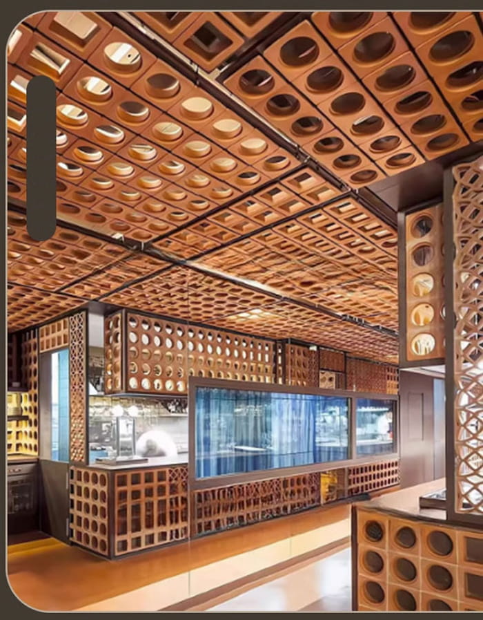 আর্কিটেকচারাল ডেকোরেশন অভ্যন্তরীণ প্রাচীর/সিলিং: মেটাল ব্রাশিং এবং কাঠের শস্য স্থানান্তরের মতো ডিজাইনগুলি স্থানের টেক্সচারকে উন্নত করে এবং হোটেল, প্রদর্শনী হল, ভিলা ইত্যাদির জন্য উপযুক্ত।