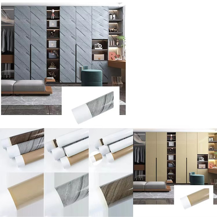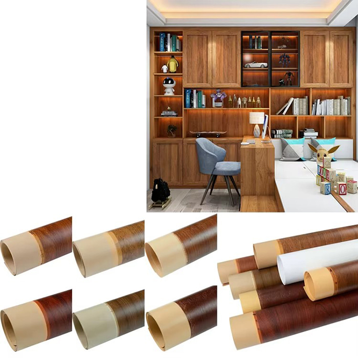 প্যানেল আসবাবপত্র : পণ্য যুক্ত মান বাড়ানোর জন্য নকল কাঠের শস্য এবং পাথরের দানা ব্যহ্যাবরণ (যেমন ওক, আখরোট, মার্বেল টেক্সচার)।