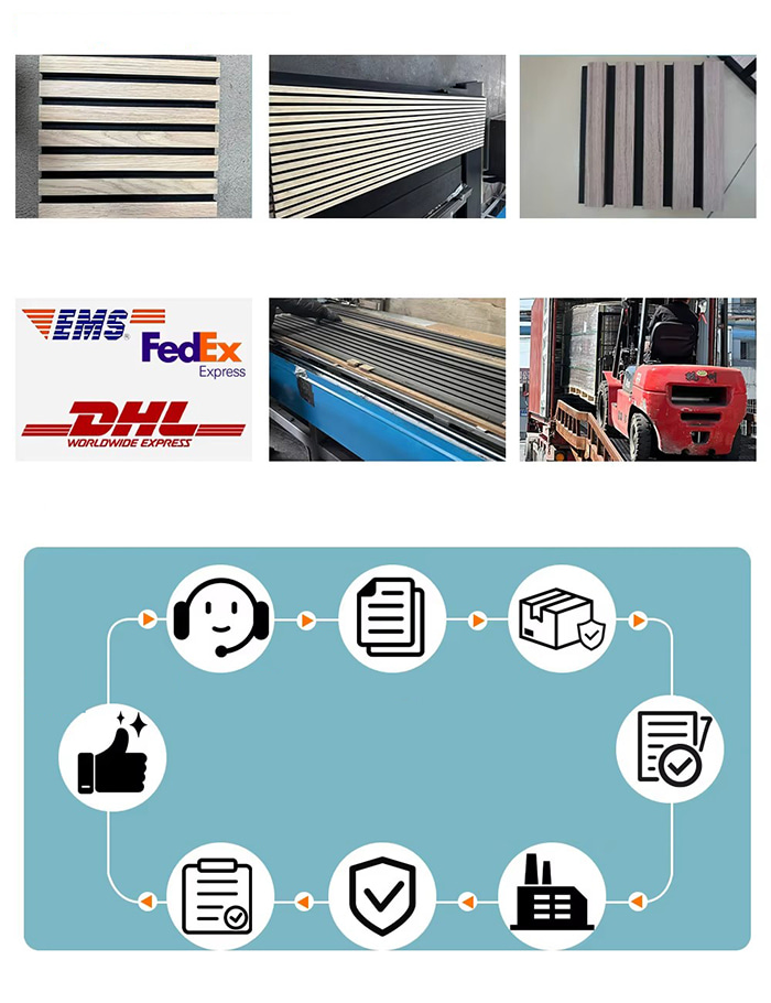 গুণমান পরিদর্শন: উত্পাদন প্রক্রিয়া চলাকালীন, ডাব্লুপিসি শব্দ-শোষণকারী প্যানেলগুলি কঠোরভাবে গুণমান পরিদর্শন করা হয়, যার মধ্যে মাত্রিক নির্ভুলতা, সমতলতা, ঘনত্ব, অগ্নি প্রতিরোধের, পরিবেশগত সুরক্ষা কার্যকারিতা এবং অন্যান্য দিকগুলি সহ।
